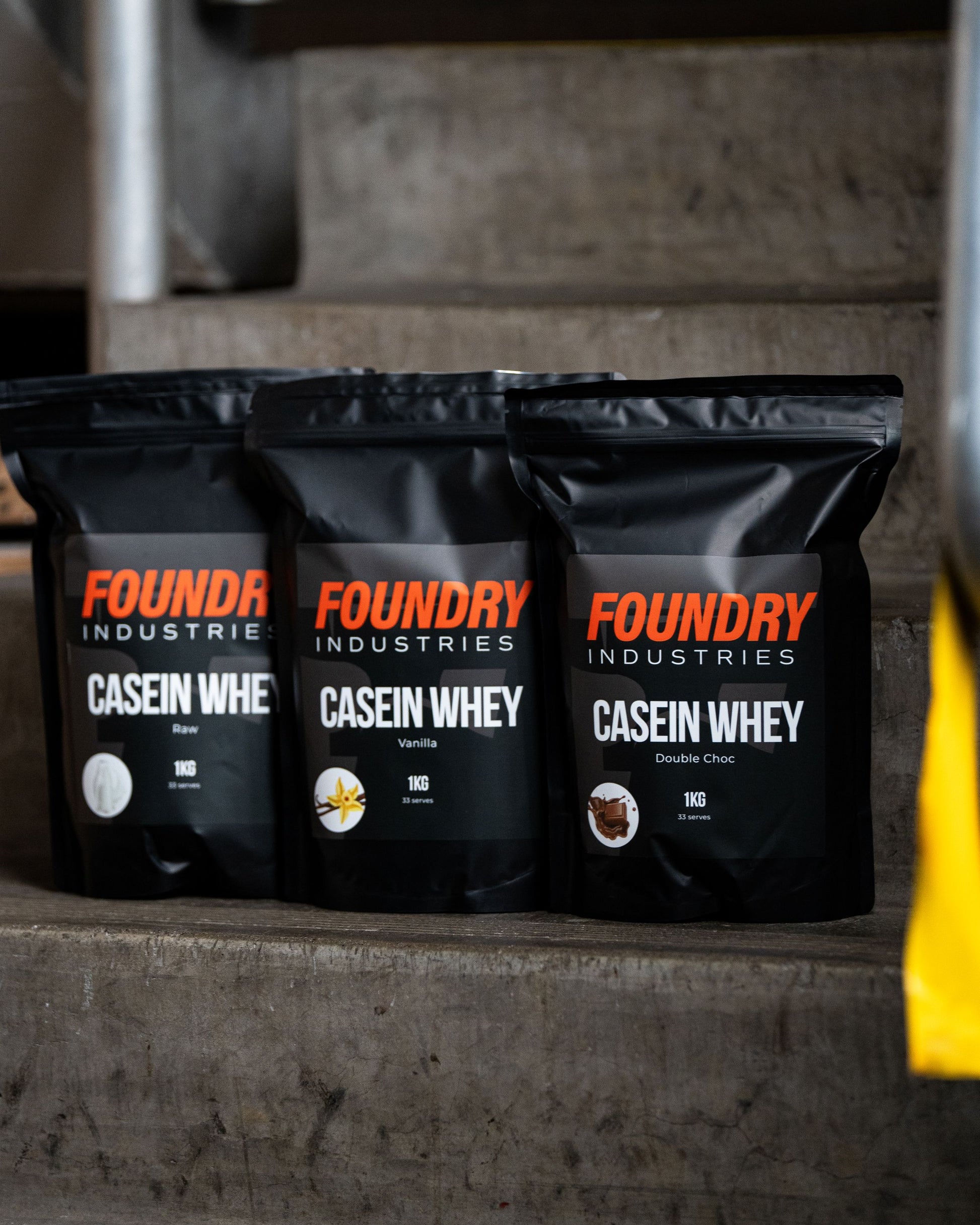 Introducing the Foundry Casein Whey Blend - the perfect partner for your muscles. This unique blend of casein and whey provides a variety of benefits, including improved muscle recovery and growth, making it the ideal supplement for any workout routine. Get ready to pump up those muscles with Foundry!